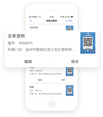 收款码台卡可放置于收银台,也可拿到顾客面前完成收款,收款码贴纸可张贴于店铺各处收款